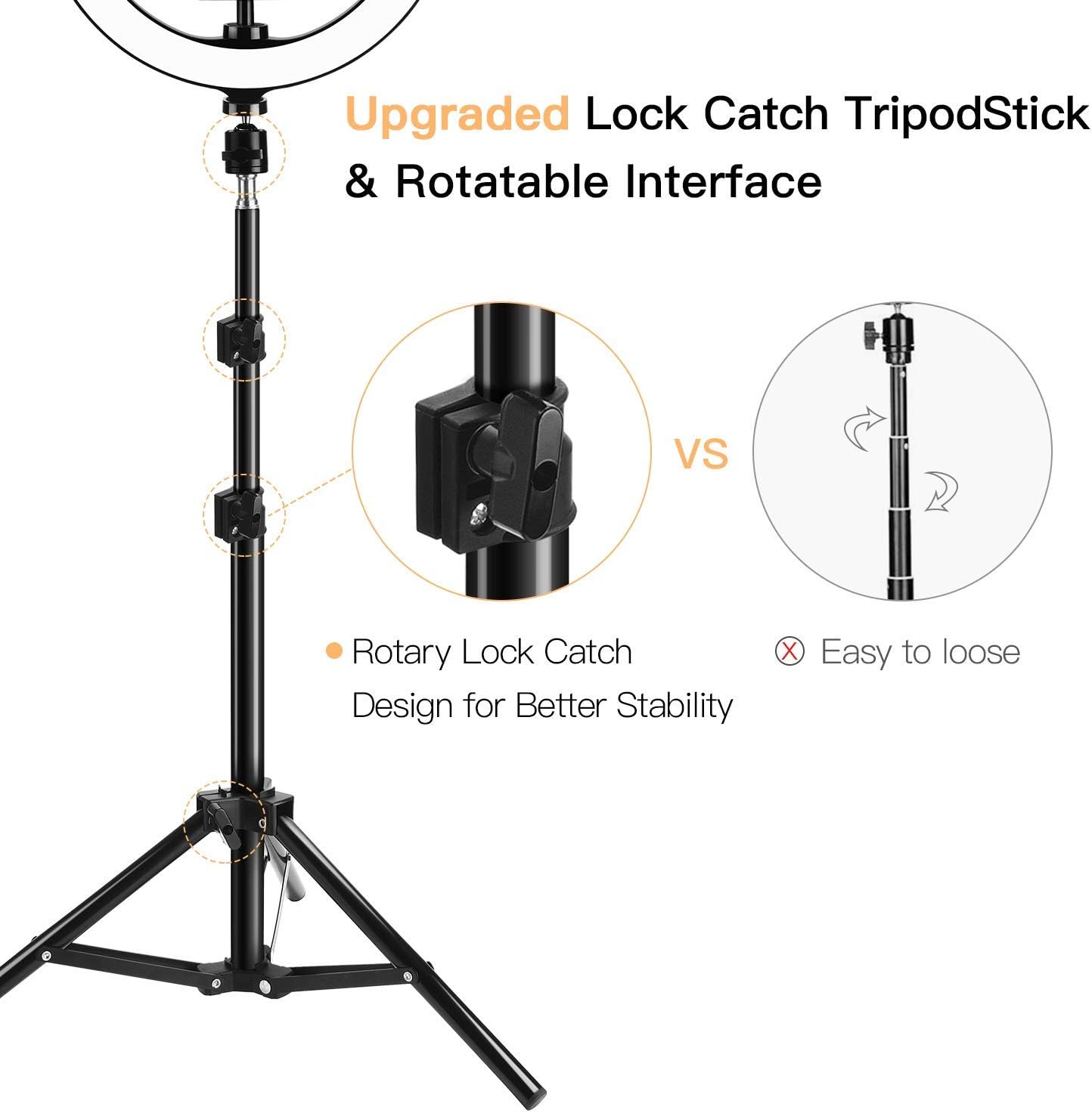• 【Ajustable| Estable| Trípode portátil】: este anillo de luz para tablet está hecho de aleación de aluminio y una estructura estable triangular antiinclinación. Está equipado con un soporte de trípode sólido que se puede extender de 15.7 a 40.2 pulgadas. Este trípode con anillo de luz no solo es estable sino también portátil. Simplemente usa tu imaginación con esta herramienta multifuncional, siempre te sorprenderá con su función múltiple.
